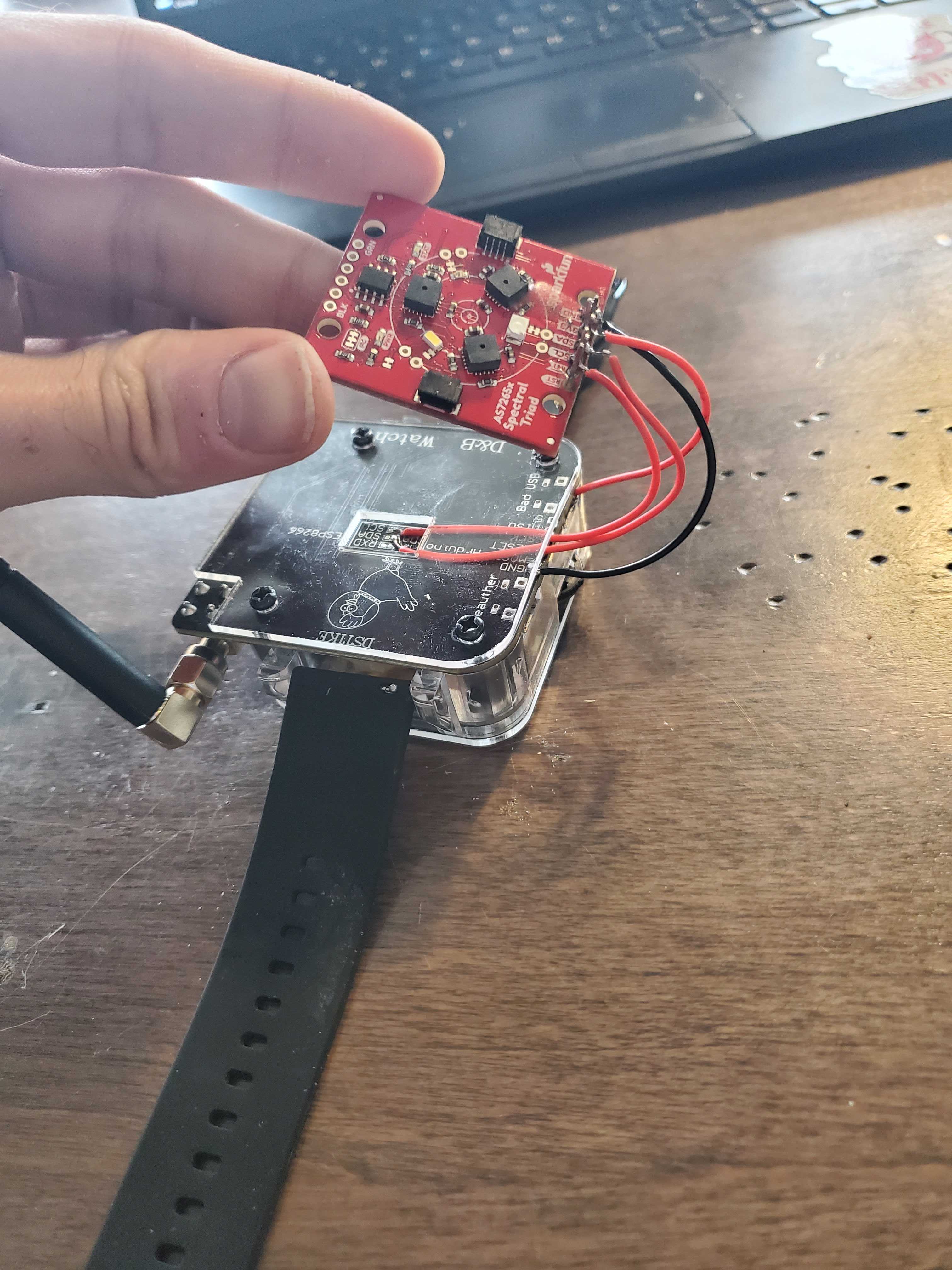 - Hardware – SparkFun AS7265x Triad spectroscopy sensor embedded in a DSTIKE Watch V4 (ESP32).